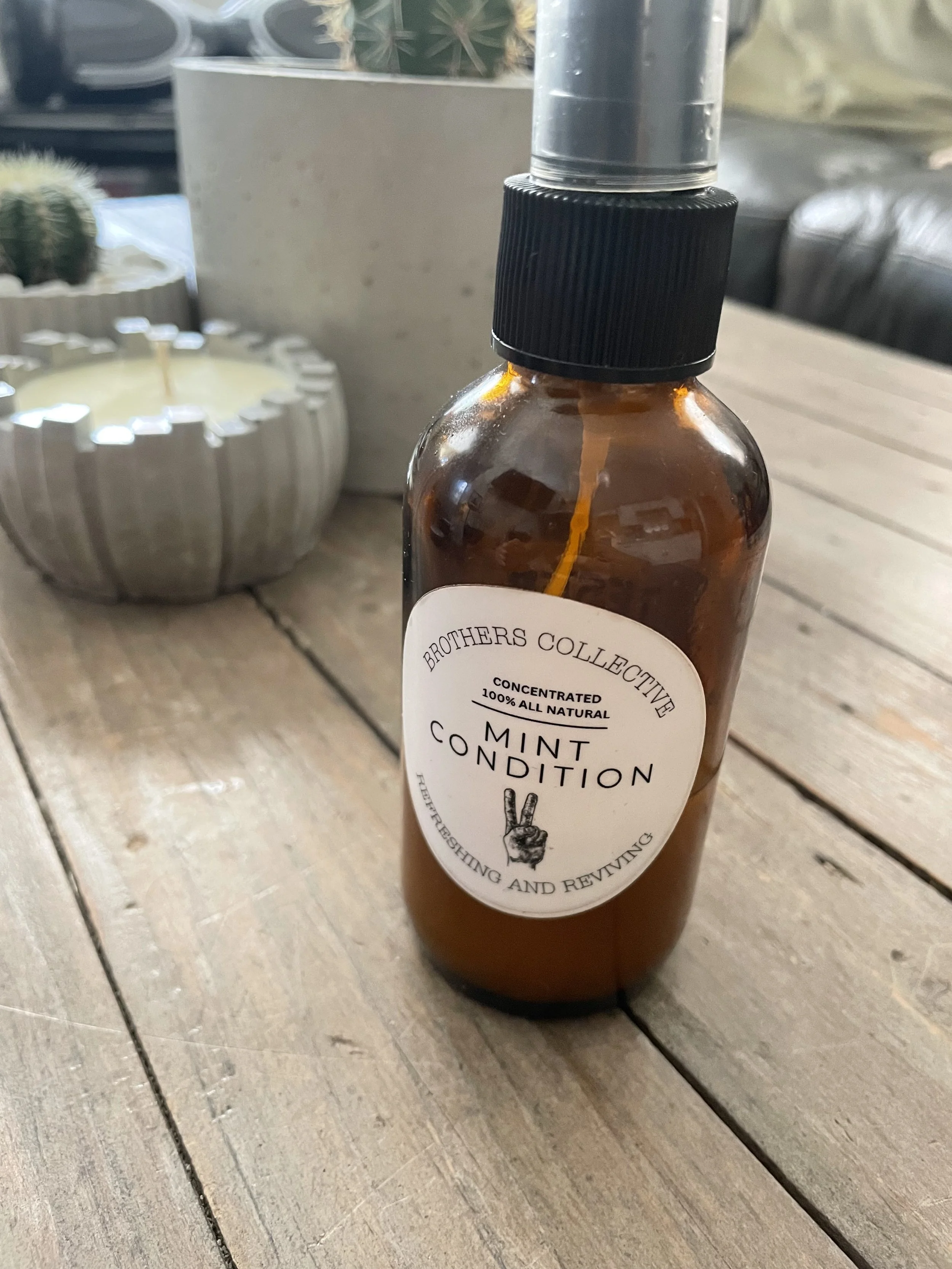 Mint Condition is a refreshing, reviving mood spray designed to cool, soothe, and reset. 100% natural and concentrated, this invigorating mist neutralizes odors, hydrates skin, and leaves you feeling instantly refreshed. With the cooling power of peppermint, wintergreen, and eucalyptus balanced by grounding spice and pine, it’s freshness in a bottle- hydrating, uplifting, and endlessly versatile.